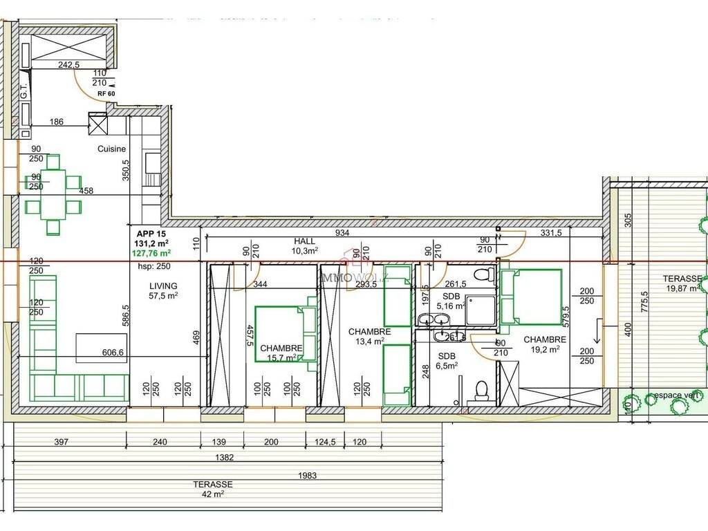 - Cozinha que se abre para uma vasta sala de estar e de jantar de 57,5 m², com grandes janelas panorâmicas que dão acesso direto a um terraço excecional, protegido da vista.