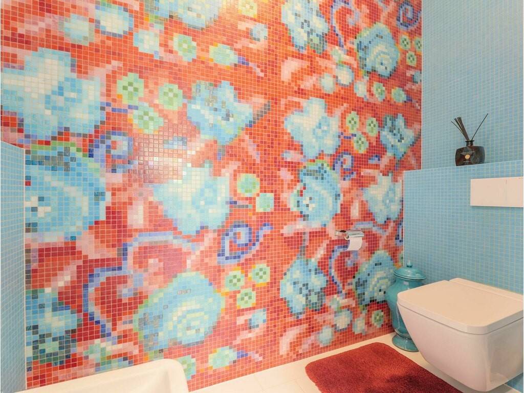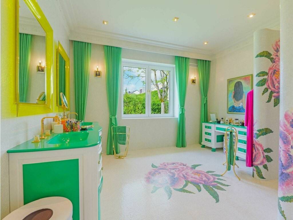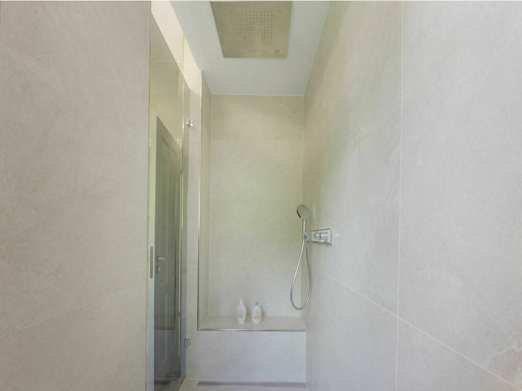Finitions haut de gamme : ardoise naturelle, marbre poli, papiers peints Roberto Cavalli, robinetterie design