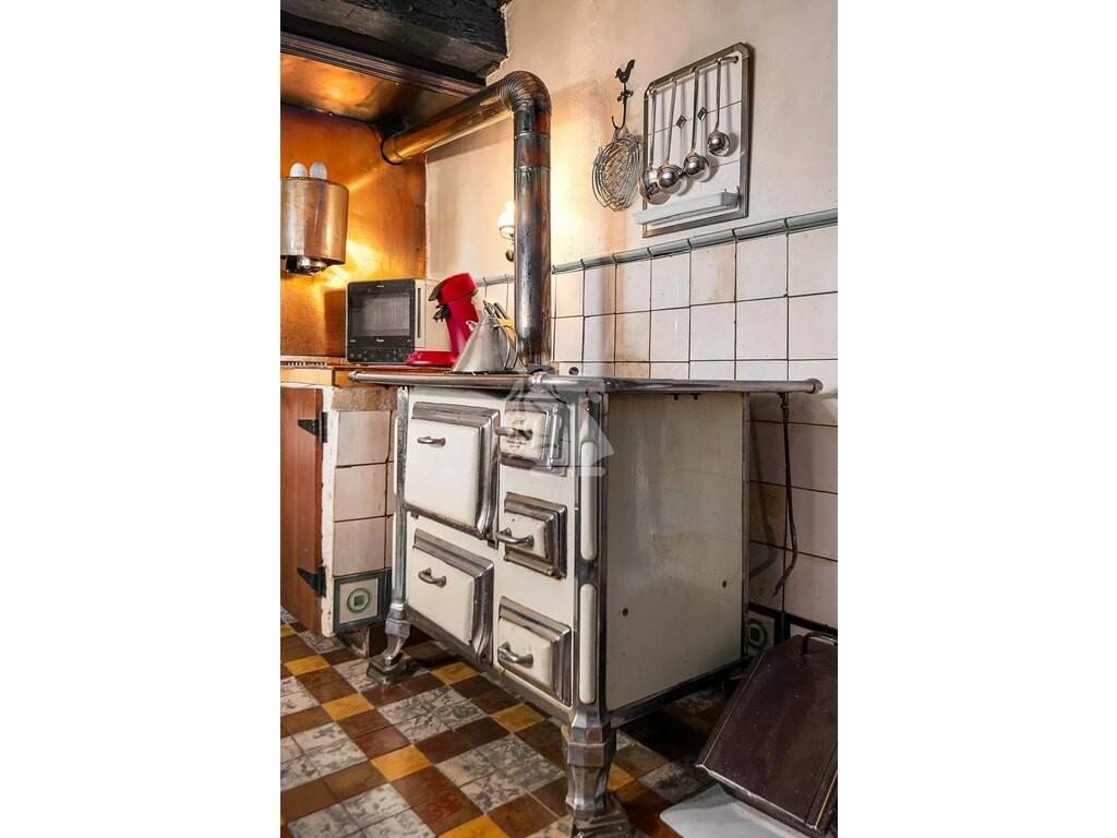 The partially fenced, well-oriented, and tree-lined garden provides a pleasant outdoor space, perfect for relaxation and family life. The overall condition of the property is good, and it has been carefully maintained, preserving original features such as exposed wooden beams, terracotta tile floors, and a traditional stove.