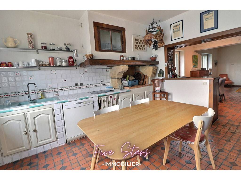 - Au rez-de-chaussée : un hall d'entrée qui mène à une cuisine équipée, un premier salon, une salle d'eau avec WC, ainsi qu'un second salon spacieux agrémenté d'une charmante cheminée fonctionnelle.