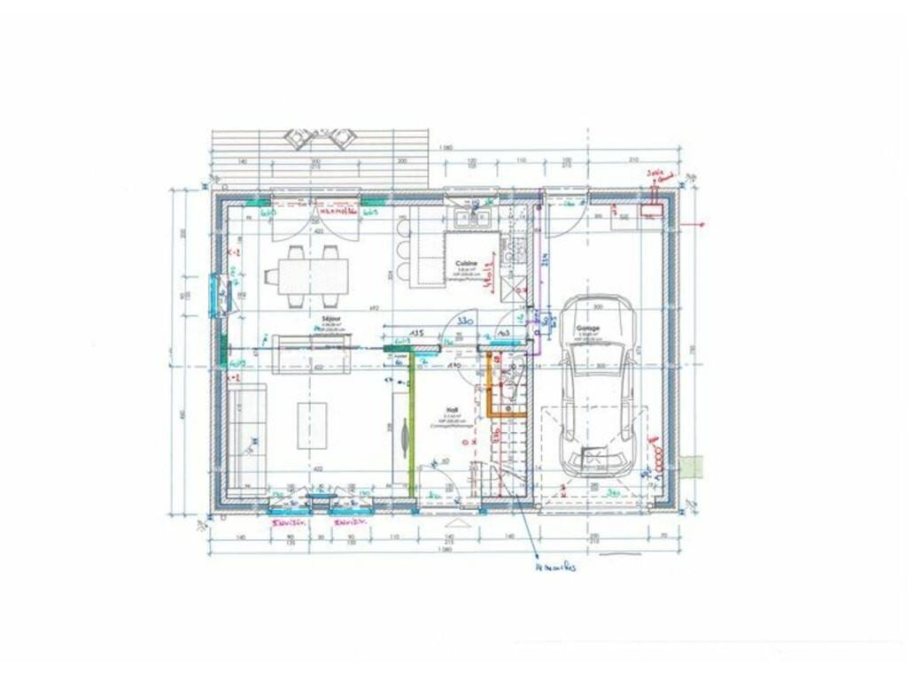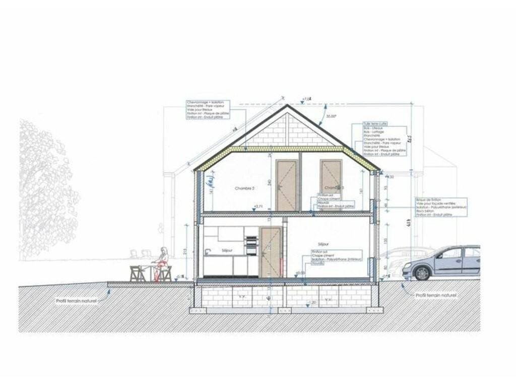 Elle se compose au rez-de-chaussée d’un hall d’entrée, d’un WC séparé, d’un lumineux et spacieux séjour avec espace cuisine ouvert et d’un garage aves espace buanderie.