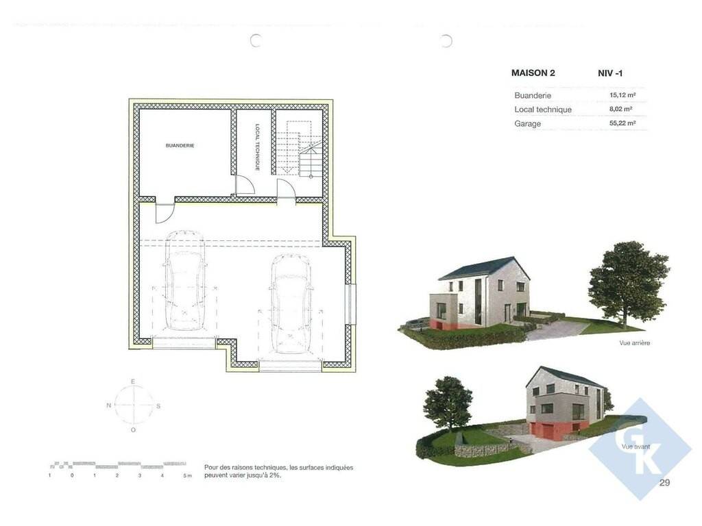 - sous-sol : buanderie (15.12 m²), garage pour 2 voitures (55.22 m²), local technique (8.20 m²).