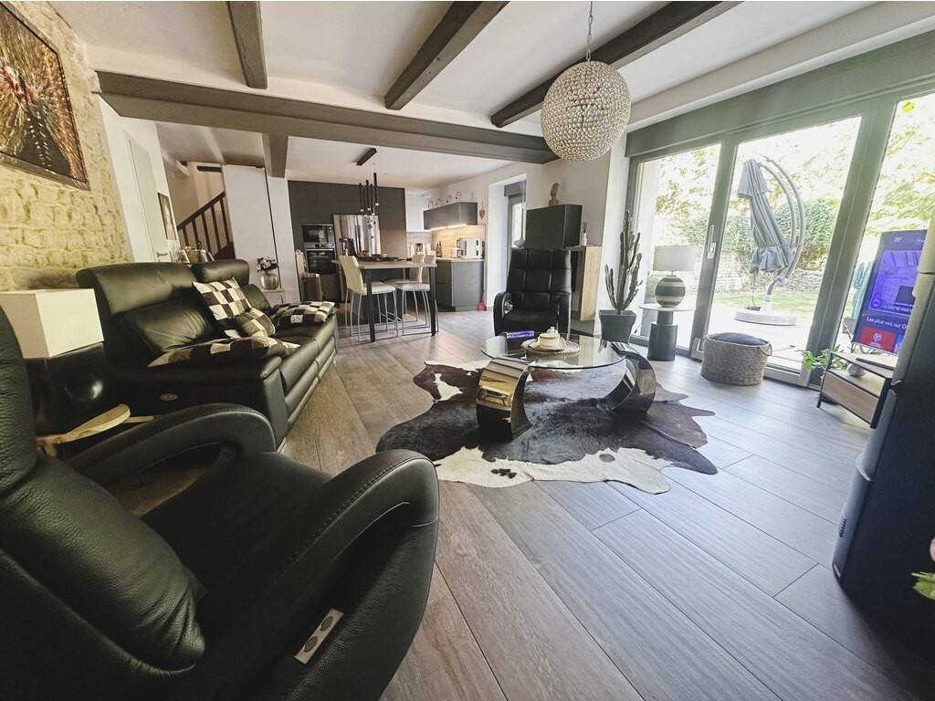 •    Cuisine équipée (installée en 2023) ouverte sur un salon lumineux avec poêle à pellets (40 m²)