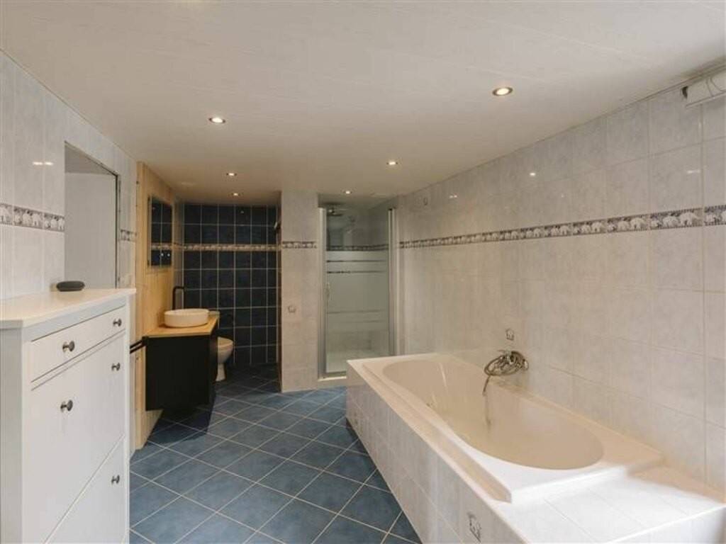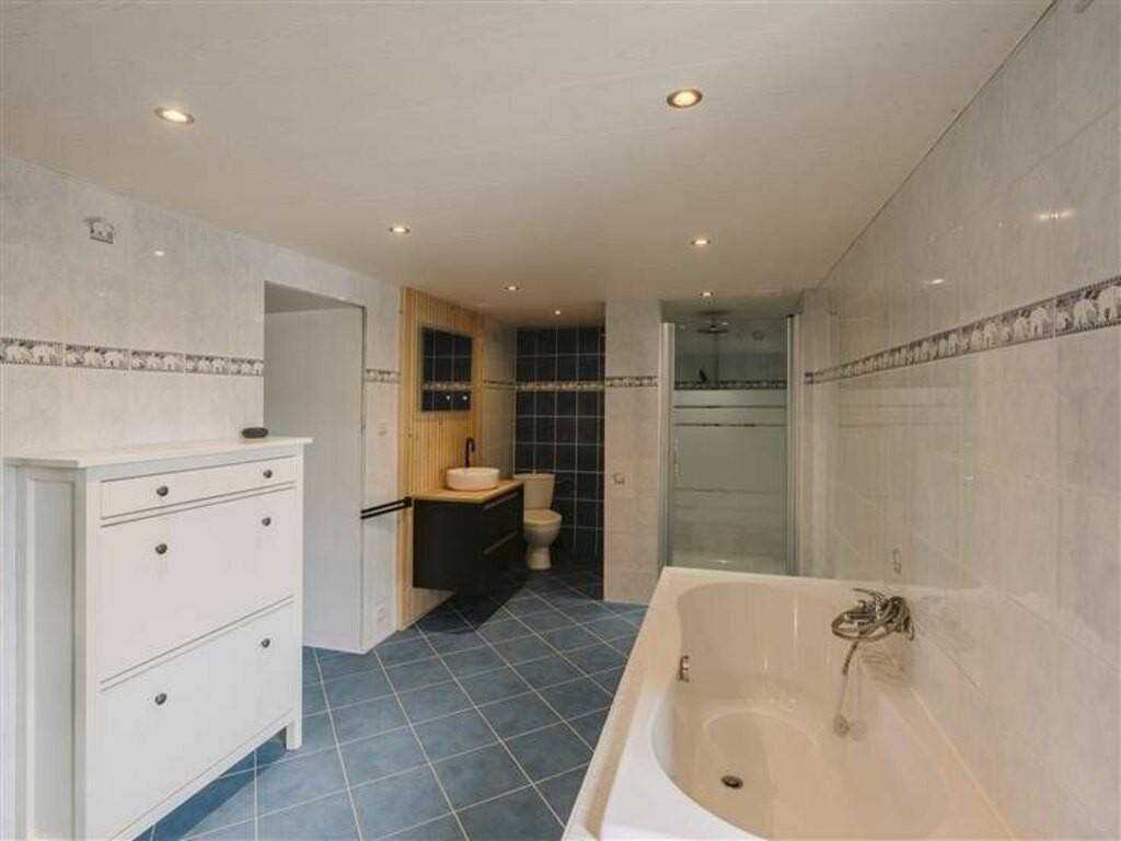 À l'étage, le spacieux hall de nuit dessert 2 grandes chambres. Vous poursuivrez avec une salle-de-bain de 14m² proposant une baignoire, une douche, une vasque et un WC .