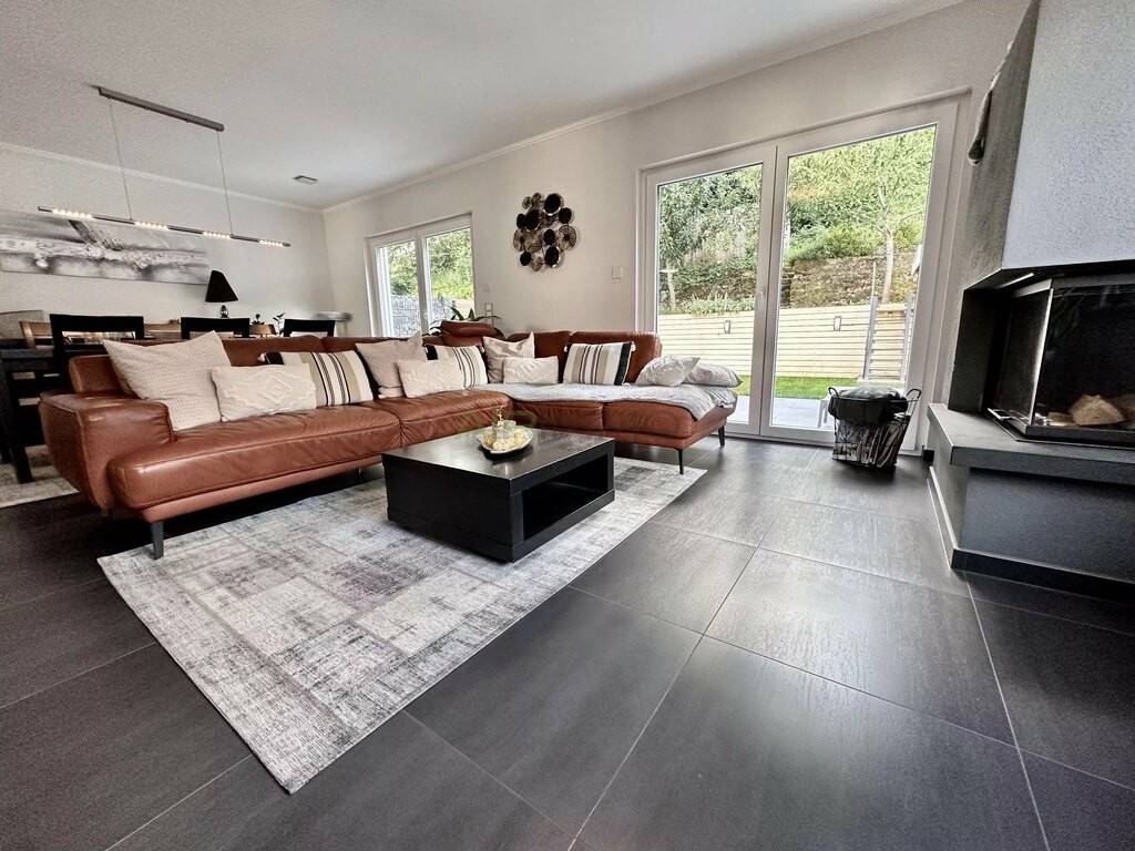Large, bright living room with fireplace, direct access to fenced garden, terrace, garden shed and vegetable garden (vegetable garden: right of use)