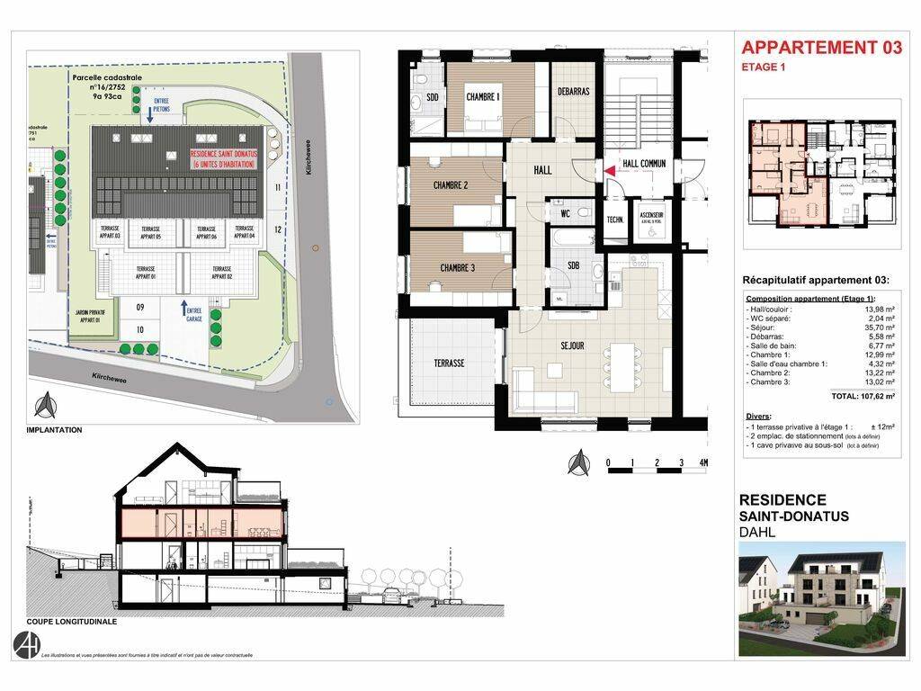L’agence immobilière JOST Immo vous invite à découvrir ce bel appartement au premier étage, situé dans la résidence Donatus à Dahl, une copropriété neuve et intimiste de seulement 6 unités, équipée de panneaux photovoltaïques et d’une pompe à chaleur géothermique avec forage vertical.