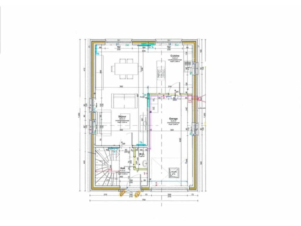 Rez-de-chaussée : hall d’entrée ± 8 m², WC séparé, séjour lumineux de ± 26 m², cuisine ouverte full équipée de ± 10 m² (frigo, four, hotte, plaque vitrocéramique, lave-vaisselle), garage une voiture avec espace buanderie ± 20 m², beau jardin avec terrasse orientation Sud-Ouest