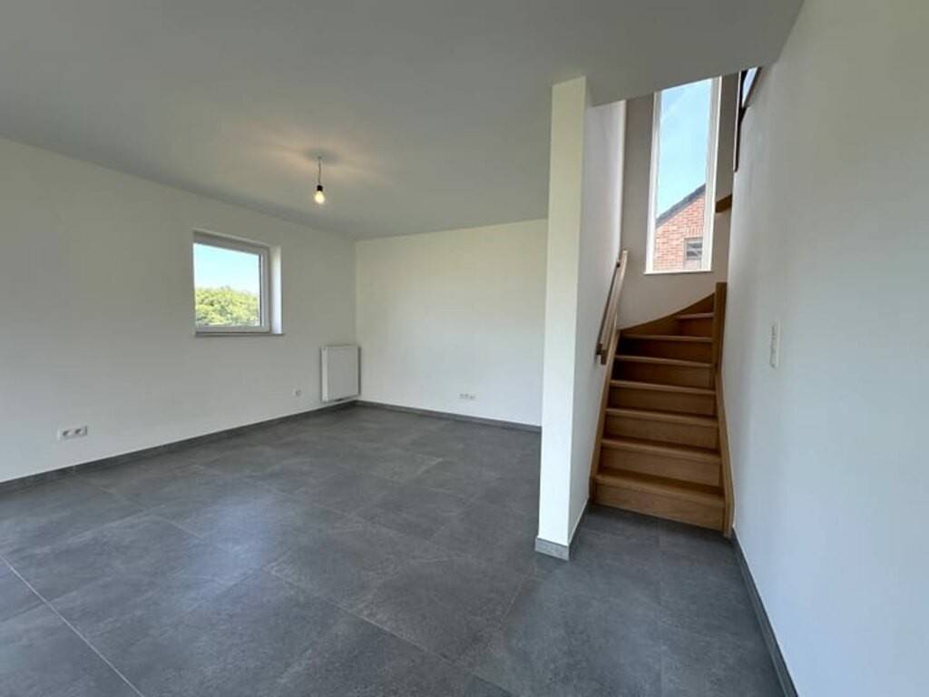Rez-de-chaussée : un hall d’entrée , un WC invité, un séjour lumineux et convivial de ±29 m² ouvert sur une cuisine équipée moderne de ±11 m², ainsi qu’un garage buanderie. La terrasse en grenaille de ±14 m² prolonge l’espace de vie vers l’extérieur.