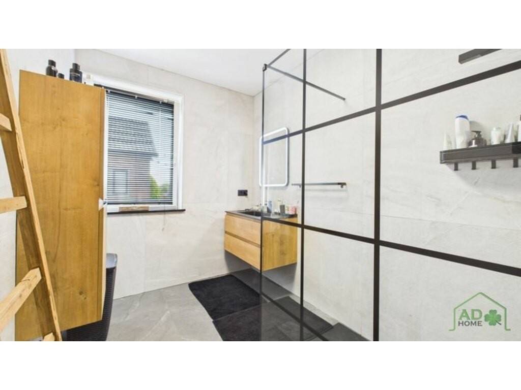 À l’étage, le hall de nuit mène à deux chambres confortables dont une avec dressing, une élégante salle de bains, une salle de douches moderne et un WC séparé.