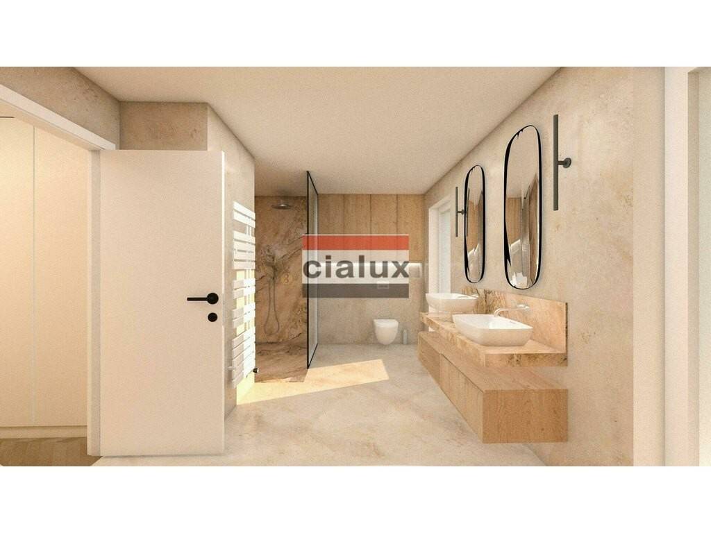 - au rez-de-chaussée se trouvent un living spacieux et très lumineux de 100m2 avec feu ouvert avec cuisine ouverte avec accès à la terrasse immense et au jardin,un débarras, une toilette séparée, grand hall d'accueil ainsi qu'une chambre/bureau avec sa salle de Douche, une terrasse de 90m2 orientées Sud-Ouest et  jardin.