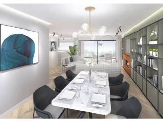 On the 2nd floor, a very large bedroom with direct access to a bathroom extends over 17 m2, living and dining room (+/- 30 m2), kitchen (+/- 11 m2) and two terraces of 22 m2 to the rear and 24 m2.
