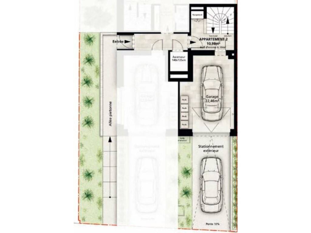 Two car parking spaces and a private elevator leading directly to the top two floors.