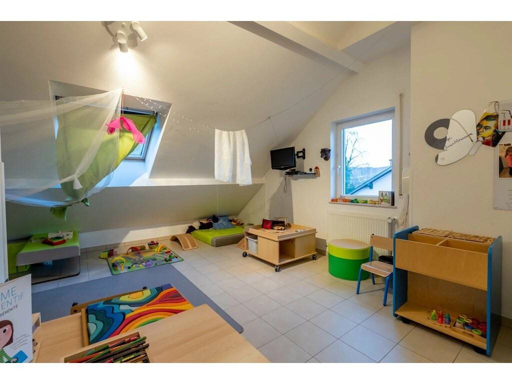 Différentes adaptations ont été faites dans l'immeuble d'habitation unifamilial pour permettre l'exploitation de l'immeuble en tant que crèche. Ainsi, des sanitaires adaptés en hauteur sont installés. Au dernier étage, dans la pièce du côté arrière, une porte qui fait la jonction avec l'immeuble voisin, a été réalisée et qui sert de sortie de secours.
