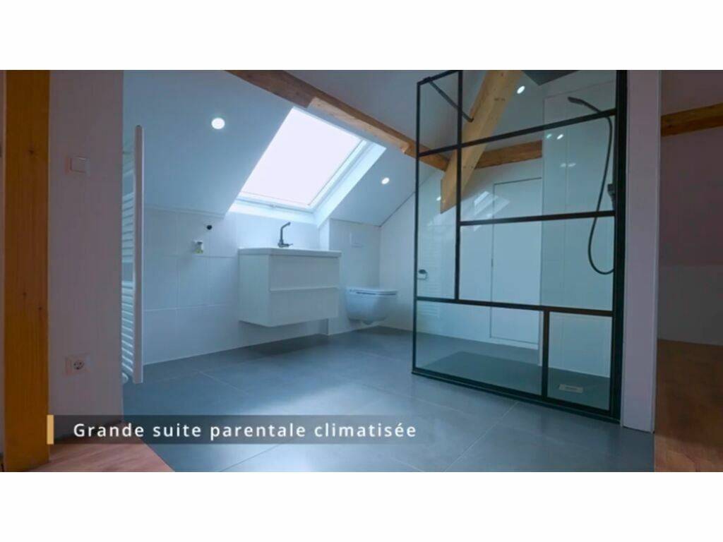 Suite parentale d’exception sous combles : un espace de 72 m² baigné de lumière, entièrement aménagé avec douche, WC privatif et chauffage/climatisation réversible — un véritable cocon de confort et d’intimité
