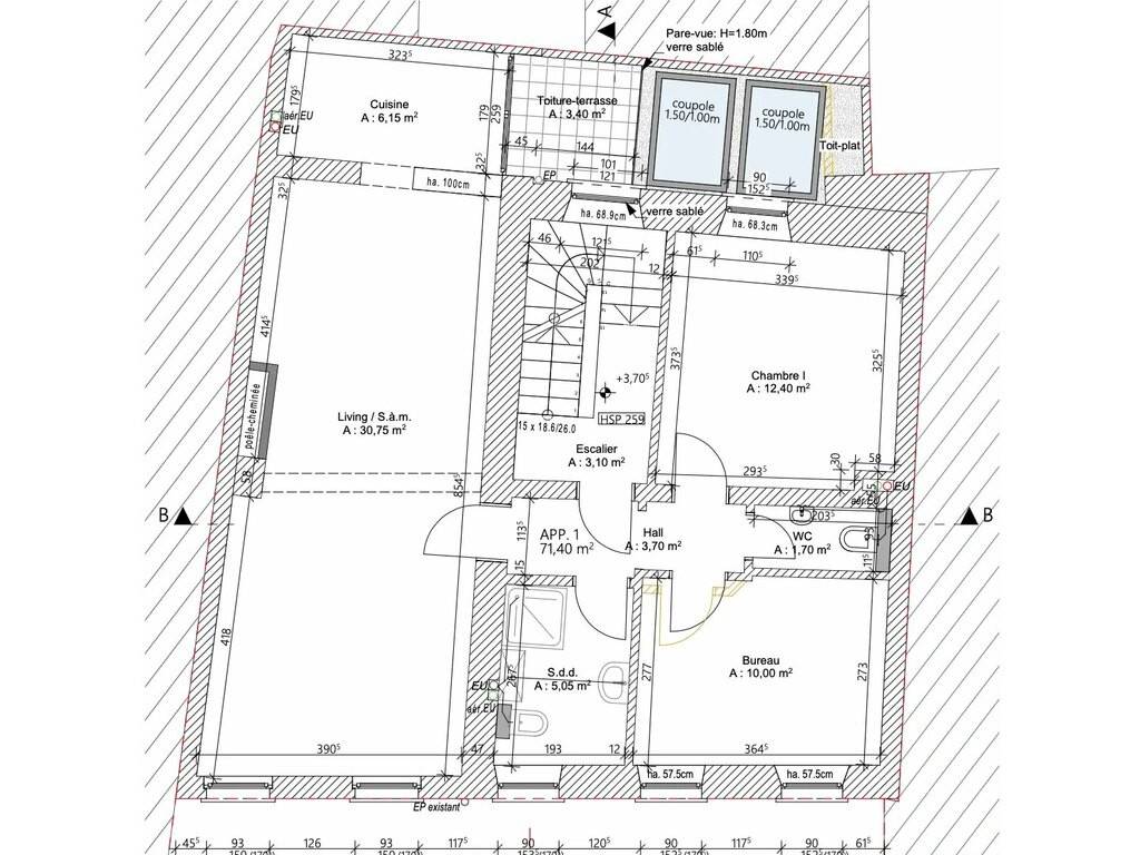 Magnifique appartement entièrement rénové, dans une résidence de 3 unités, situé en plein coeur de la ville d'Ettelbruck, avec de belles finitions et proche de toutes commodités(*). Le bien dispose de 71,40 m2 et se compose comme suit :