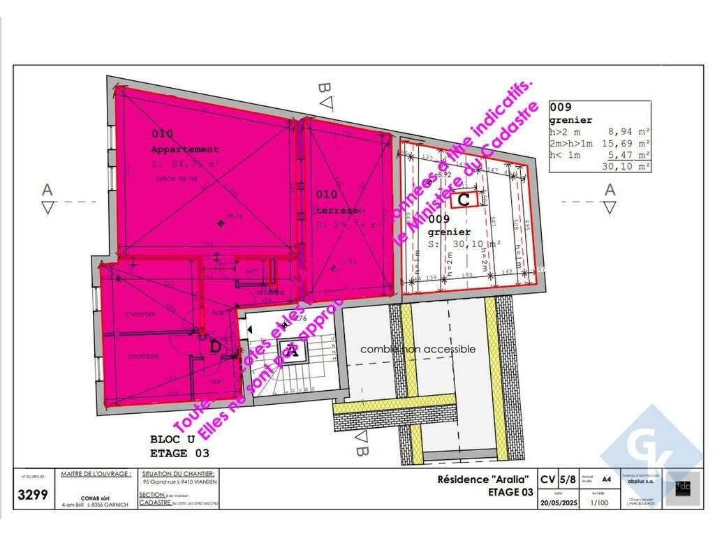 • Surfaces habitables des différentes unités : 86.10 m² à 93.10 m²