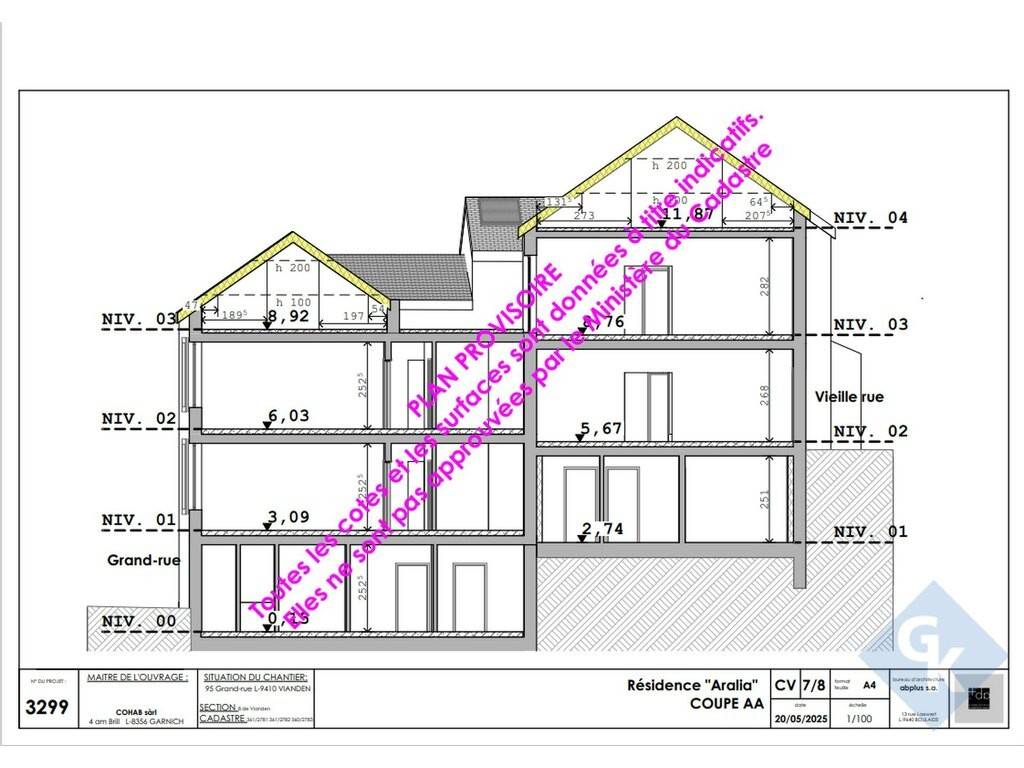 Construction d'une nouvelle résidence à 5 appartements en plein centre de Vianden, dans la Grand-Rue. Travaux gros œuvres terminés.