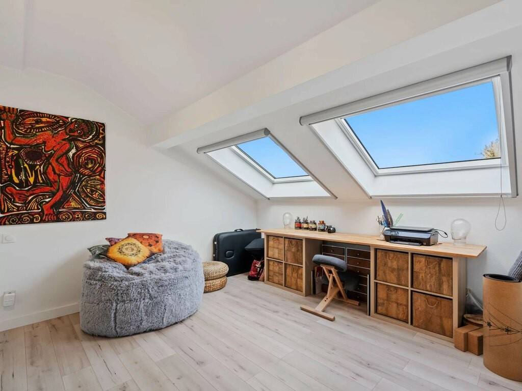 The first level (1st floor) includes an open living area of approximately 48.52 m² with a living and dining room opening onto the balcony (approx. 4.5 m²), as well as a fully equipped open kitchen (renovated in 2022). This level also offers a bedroom (approx. 9.47 m²) currently used as an office, a shower room with an integrated laundry area, a storage room adjacent to the kitchen, and an additional storage space for optimal daily comfort.