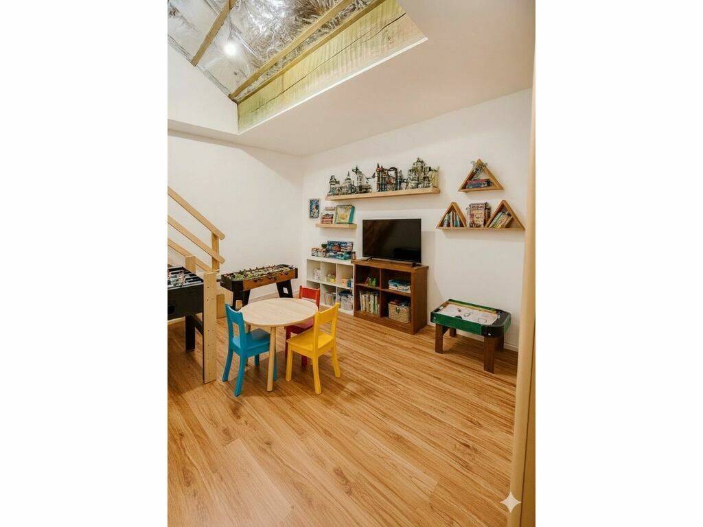 Au deuxième étage, deux chambres à coucher et un espace de jeux, avec une mezzanine peuvent être aménagés à de nombreuses fins.