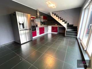 - Living avec cuisine équipée de +/- 43m² et avec accès terrasse de +/- 16m²