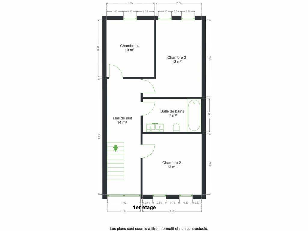 Un hall de nuit spacieux dessert trois chambres ainsi qu’une salle de bain.