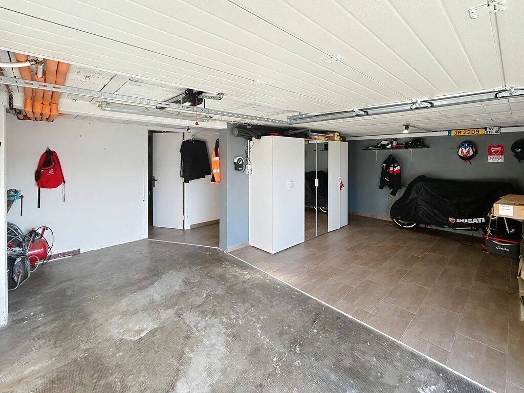 -Un grand garage fermé (porte motorisée) pouvant accueillir une voiture, motos, vélos et espace atelier et rangements.
