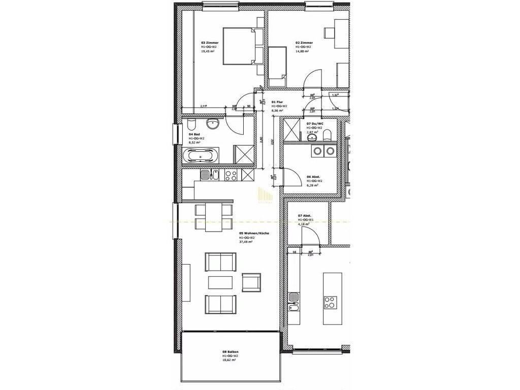 - Open-plan living/dining area with kitchen (37.48 sqm)