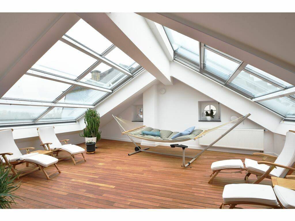 - The top floor is converted into a multi-purpose workspace and a winter garden with a retractable roof to enjoy in good weather, a wide-open view of the beautiful surrounding landscapes.