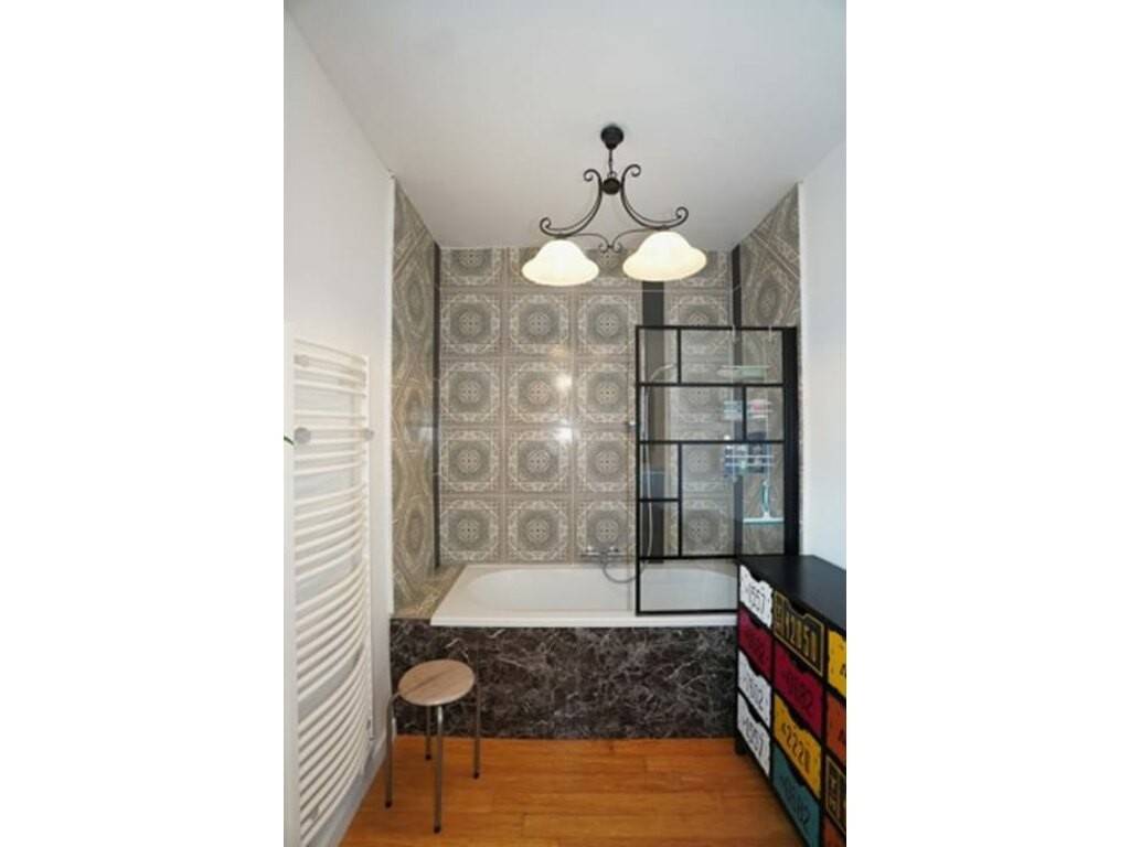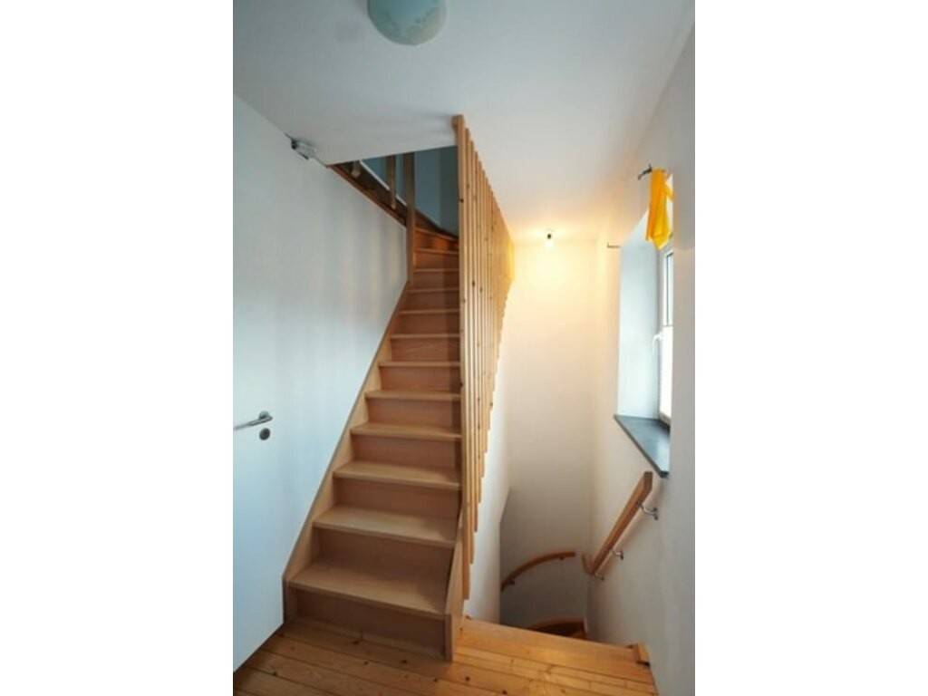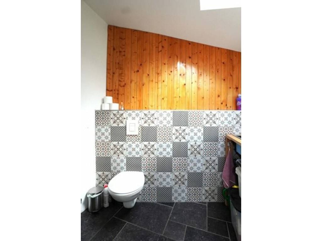 Le premier étage se compose d’un hall de nuit avec l’escalier en bois, de 2 chambres à coucher spacieuses, ainsi que d’une salle de bain dissimulée derrière une superbe ancienne porte en bois coulissante et comprenant une baignoire, une vasque en pierre naturelle et un wc.