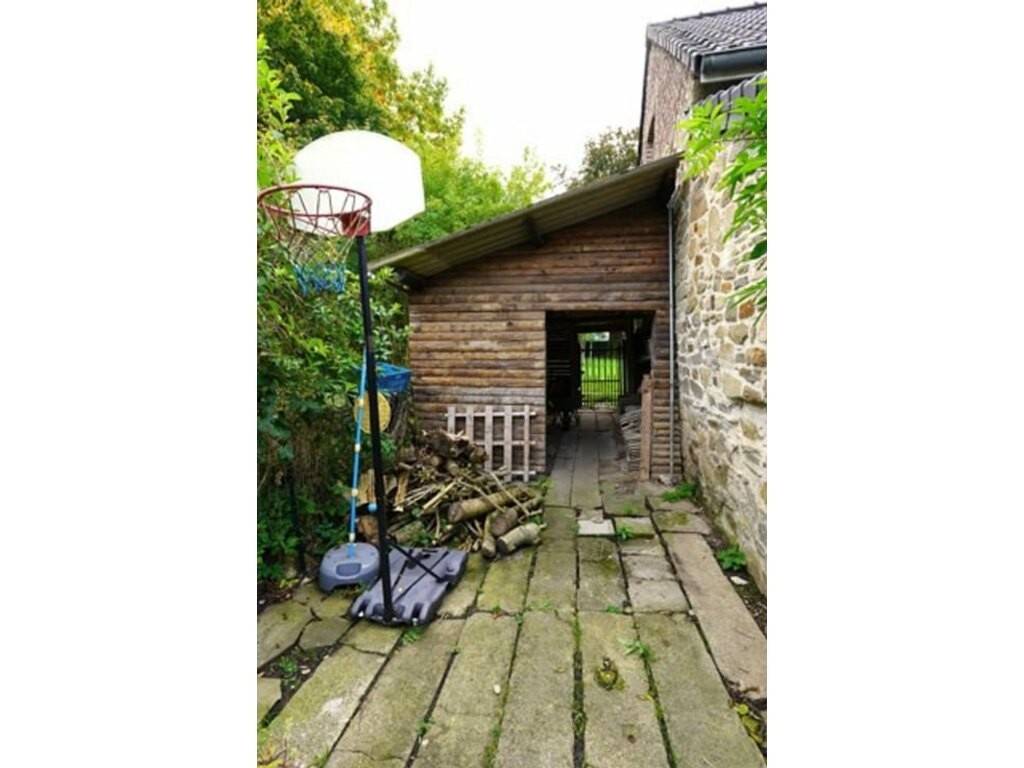 L’accès à la terrasse ensoleillée et son jardin se fait par la cuisine, ce bel espace profite de la vue sur le Viaduc de Moresnet et comprend un grand abri de jardin, ainsi qu’un abri pour le stockage du bois situé en fond de parcelle et permettant d’accéder à l’espace vert comprenant la plaine de jeu publique située à l’arrière de la maison.