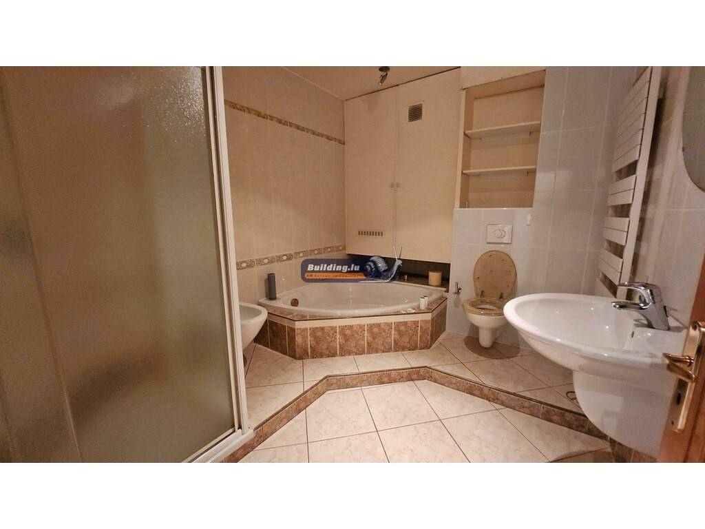 - grande salle de bains avec baignoire d'angle, douche, lavabo et WC