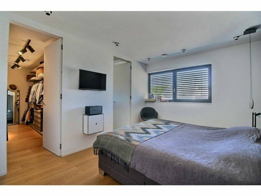 This contemporary house completed in 2019 combines aesthetics, modern comfort, and energy efficiency. It offers premium features, a landscaped garden, a fitness room, and no fewer than five parking spaces.