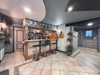 Le rez-de-chaussée se compose d’une entrée, d’un WC séparé, d’une grande pièce de vie lumineuse avec cuisine équipée, coin bar et accès vers l’extérieur, ainsi que d’un salon et d'une buanderie. Un accès direct mène aux caves, offrant un bel espace de stockage.