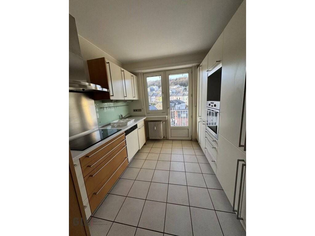Situé au 7ᵉ étage d’une résidence cet appartement spacieux offre une magnifique vue dominante sur le parc de Differdange.