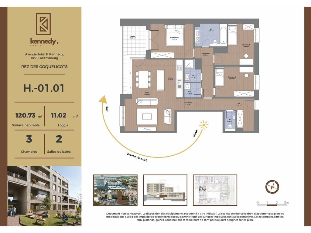 Discover this 120.73 m² apartment in Kirchberg with an 11.02 m2 loggia opening onto the living room and a bedroom.