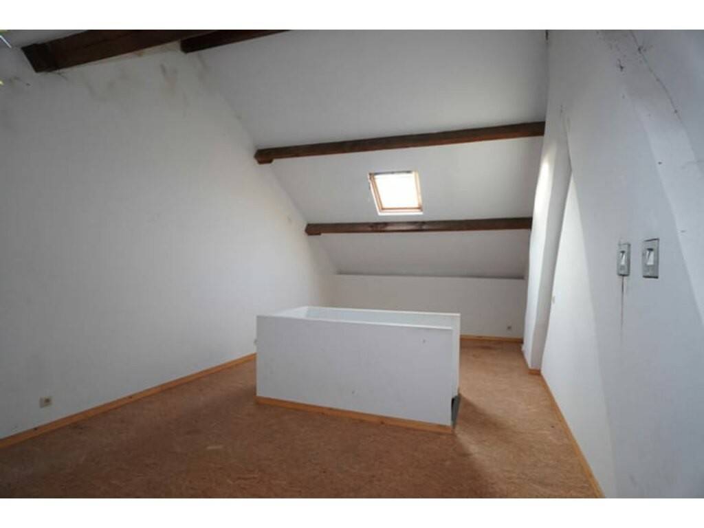 L’étage est composé d’un hall de nuit, d’un wc séparé, d’une grande chambre à coucher (qui pourrait être divisée en deux) et d’une salle de bain composée d’une douche, d’un lavabo et des accès pour machine à laver.