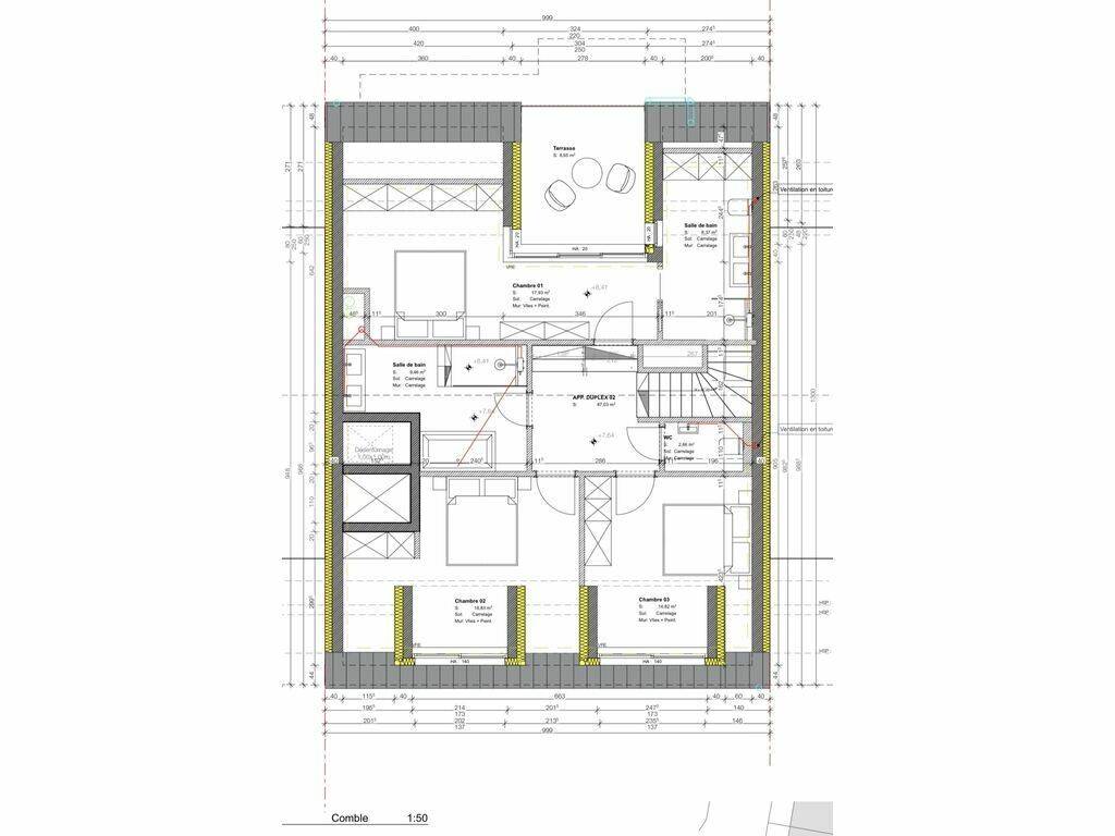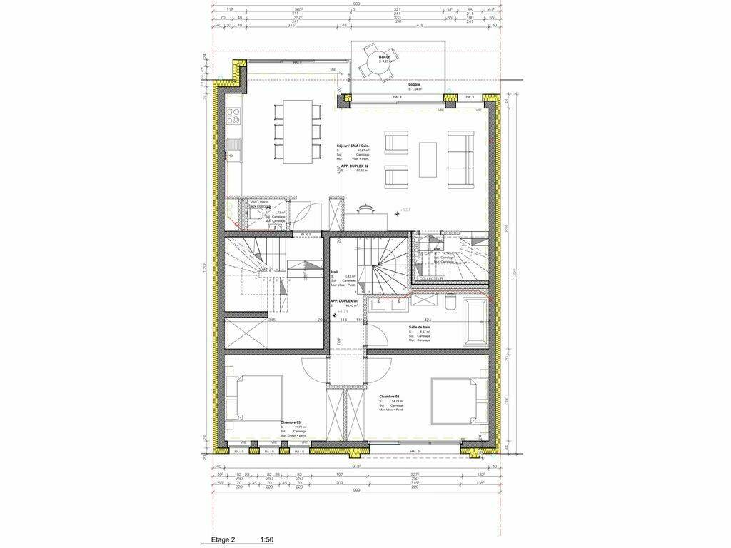 Nous vous proposons un appartement duplex en future construction de haute standing dans un immeuble bifamilial à Luxembourg-Belair près de la rue du Kiem. Il sera composer au rez-de-chaussée de hall d'entrée, d'une cuisine équipée ouverte sur salon et salle à manger 42,95m2 agrémenter d'un balcon donnant à l’arrière de l'immeuble, d'une chambre avec salle d'eau et wc 22,43m2, wc séparé. Au premier étage deux chambres et une salle de bain avec wc. Au sous-sol d'une cave, d'un emplacement intérieur 30m2.