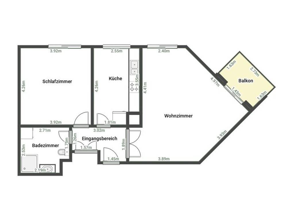 Le bien se compose d'un hall d'entrée spacieux avec armoires encastrées, d'un lumineux séjour avec salle à manger, d'une cuisine séparée entièrement équipée installée en 2024 avec des appareils SIEMENS, ainsi que d'une salle de bain rénovée comprenant une grande douche, une machine à laver et un sèche-linge intégrés.