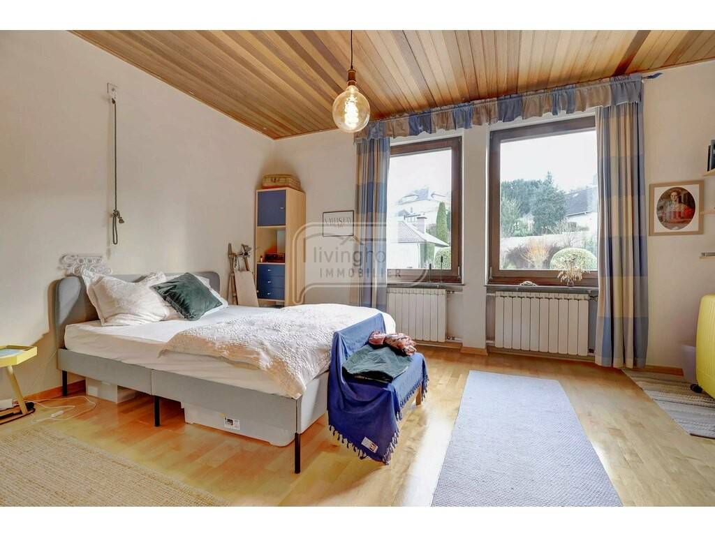 Elle se développe sur plusieurs niveaux et propose notamment 7 chambres à coucher spacieuses, réparties sur les étages, offrant de multiples possibilités d’aménagement (chambres, bureaux, salle de jeux, dressing, etc.), 4 salles de bain, plusieurs pièces de vie lumineuses avec vue sur le jardin, ainsi qu'une véranda chauffée.