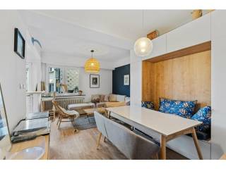 Completely renovated by an interior designer, good taste and a warm ambiance prevail. It is situated on the 3rd floor without an elevator in a charming old building. With a surface area of +/- 72 m2, this apartment stands out for the optimization of spaces that guided its renovation, its custom-made furniture, and integrated storage so everything has its place, along with its beautiful brightness. Very well laid out, it offers a separate entrance from the living room, with an elegant bookshelf used as a partition screen . The living room, consisting of a lounge and dining area in succession, opens onto a lovely fitted kitchen. A special mention goes to the small balcony accessible from the kitchen, which is quiet and offers a view of the church of Bonnevoie.