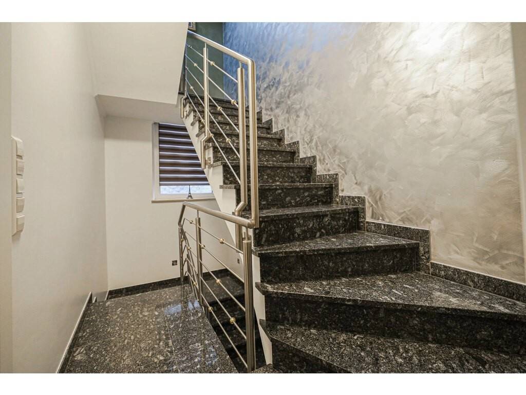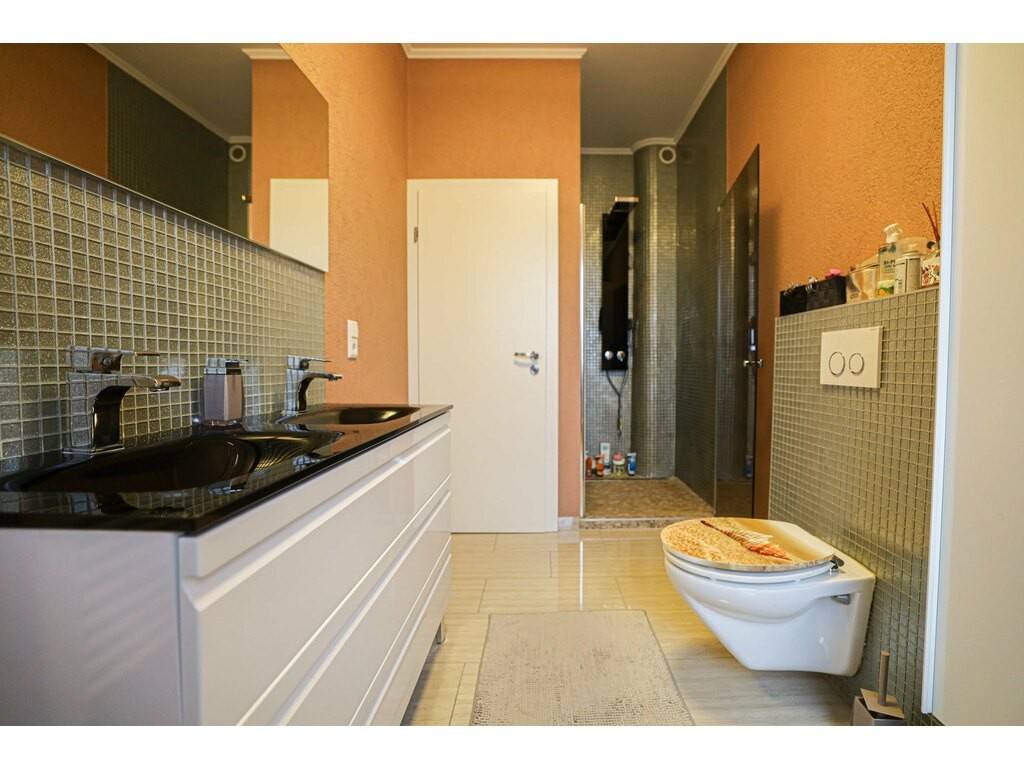 Welcoming entrance hall, separate toilet, vast living space comprising a large living room with dining area and open kitchen, all offering direct access to the terrace and garden.