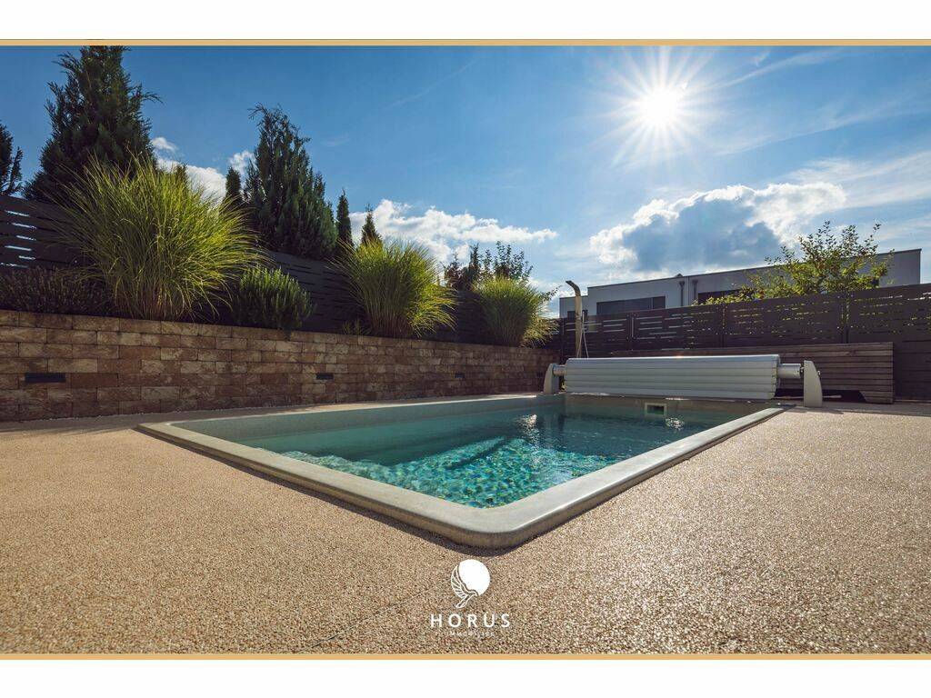 This property is complemented by: - A garage with a heating space - Two outdoor parking spaces - A west-facing terrace (approximately 35 m²) - A garden with a garden shed - A heated swimming pool