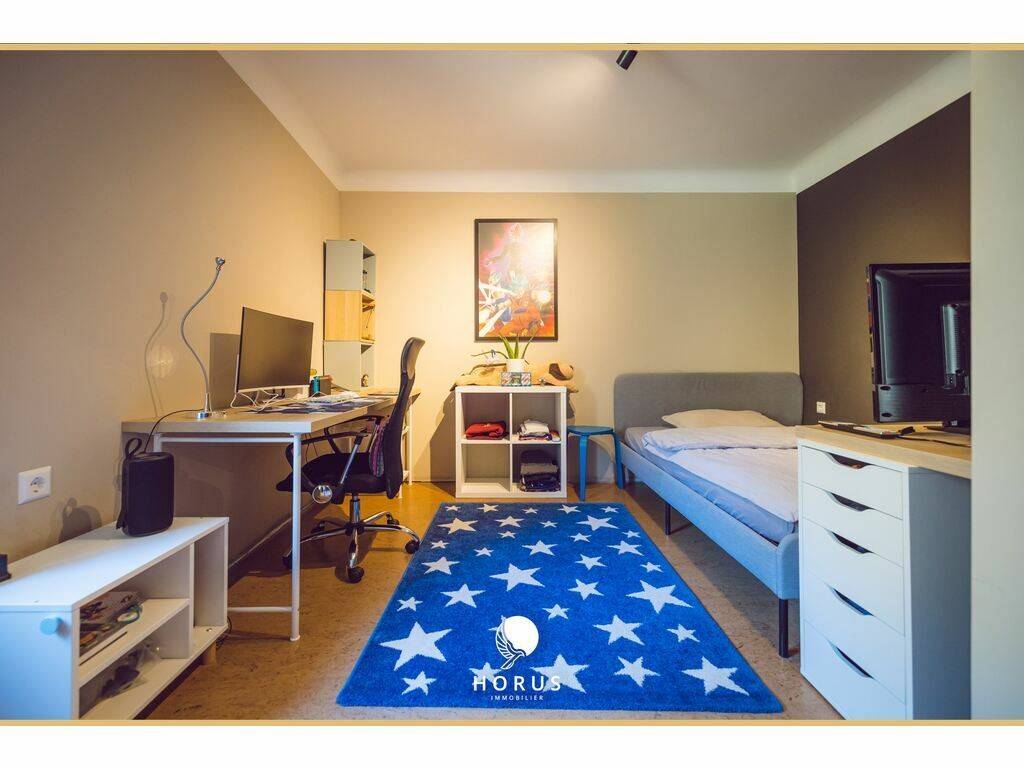 First floor: - A night hall - Three bedrooms (+/- 12m², +/- 13m² and +/- 15m²) - A bathroom with a laundry area