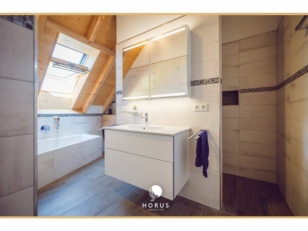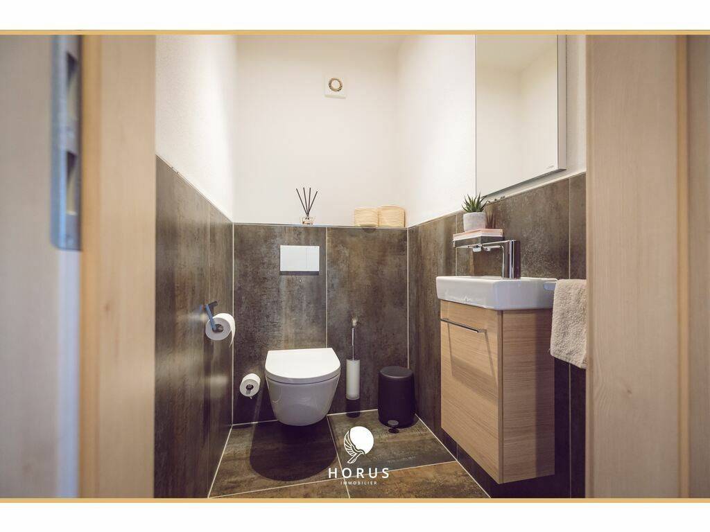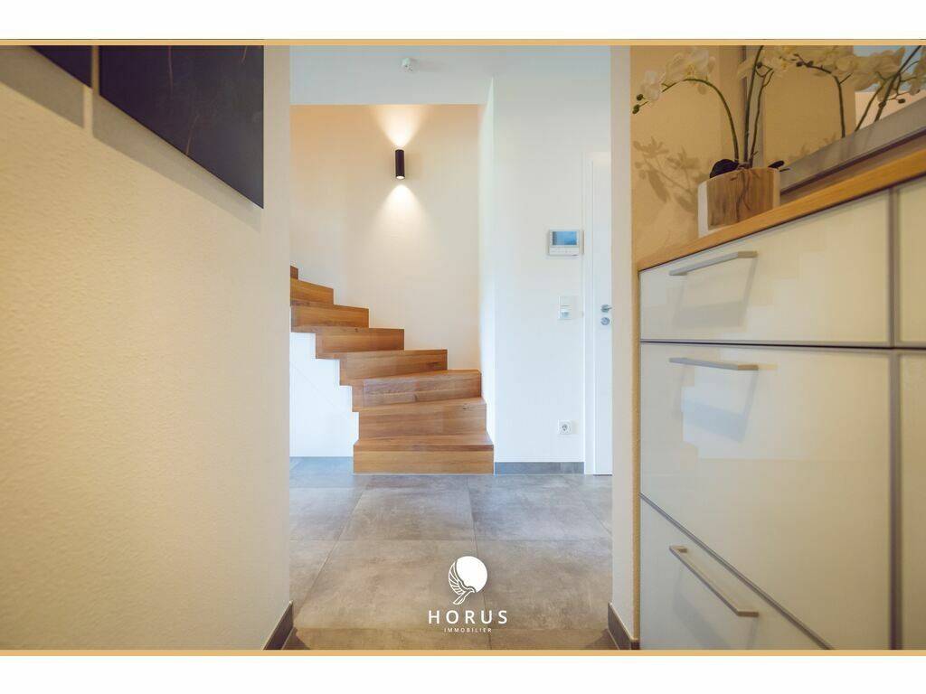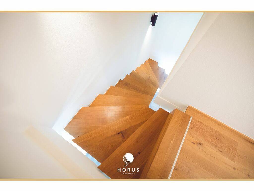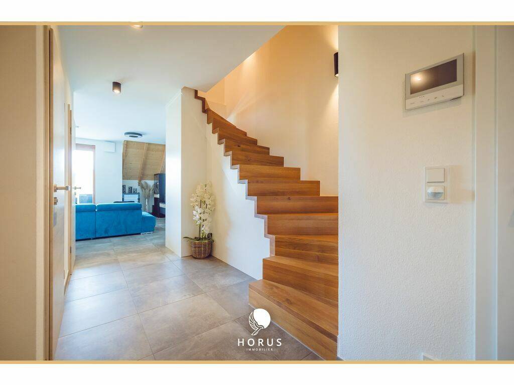 The duplex is located just 4 minutes from the primary school, bakery, and daycare, with several supermarkets nearby. It is also 7 km from Mersch.