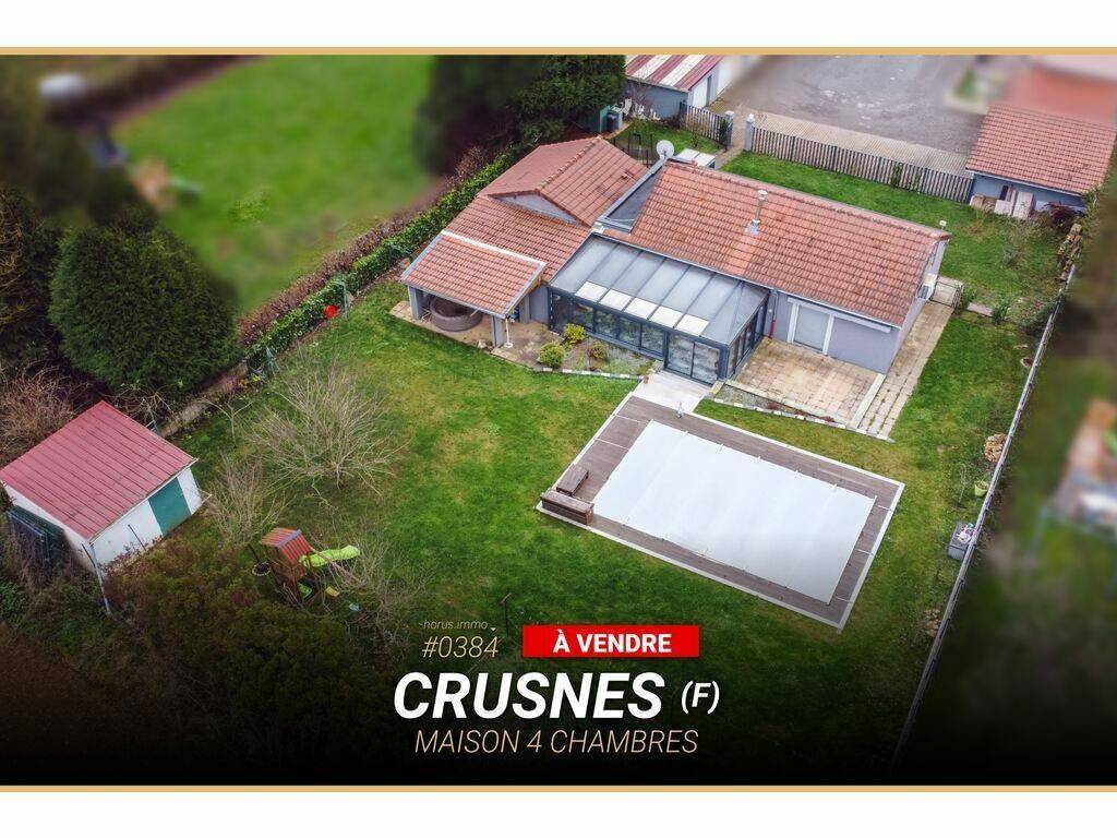 HORUS Immobilier offers exclusively for sale this single-storey house with 4 bedrooms, approximately 135m² of living space, located in Crusnes, France.