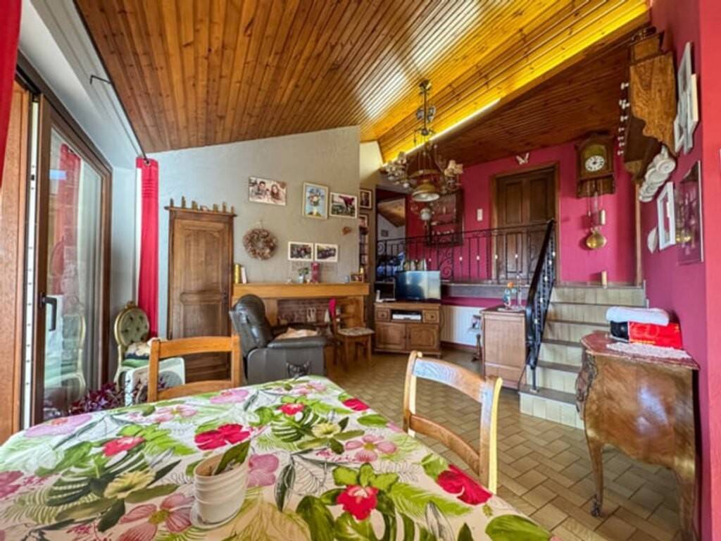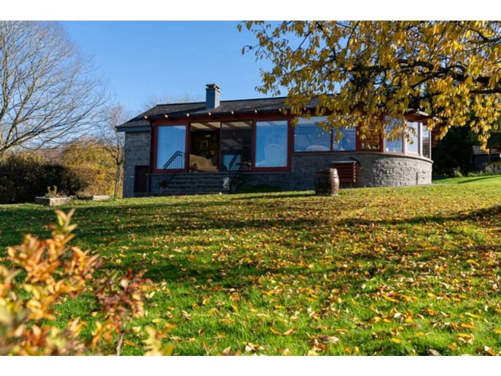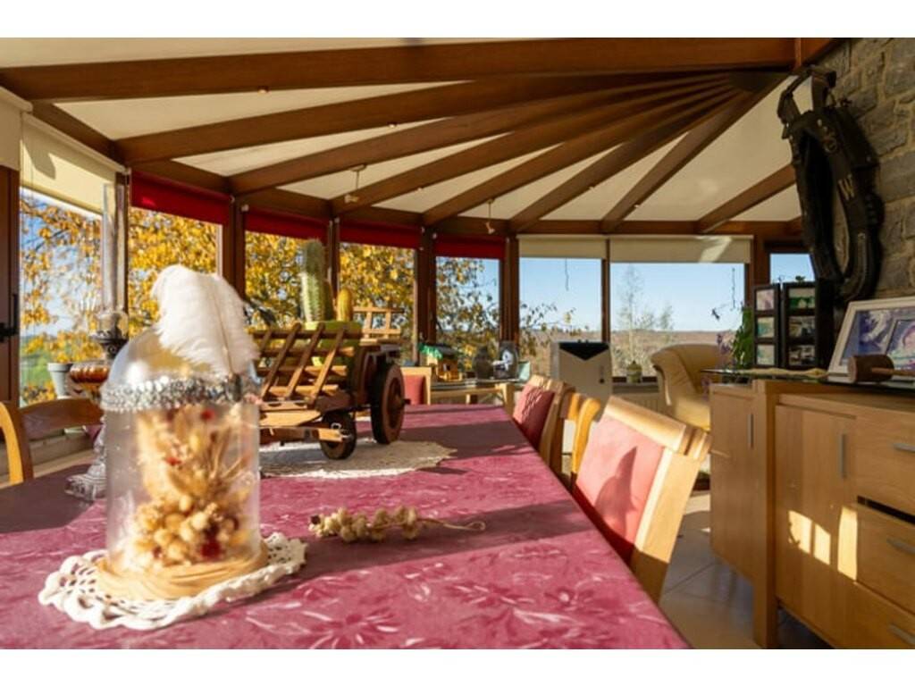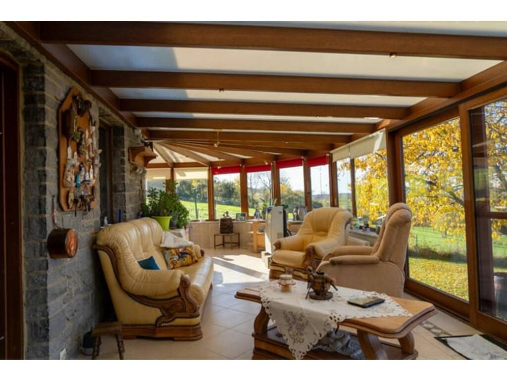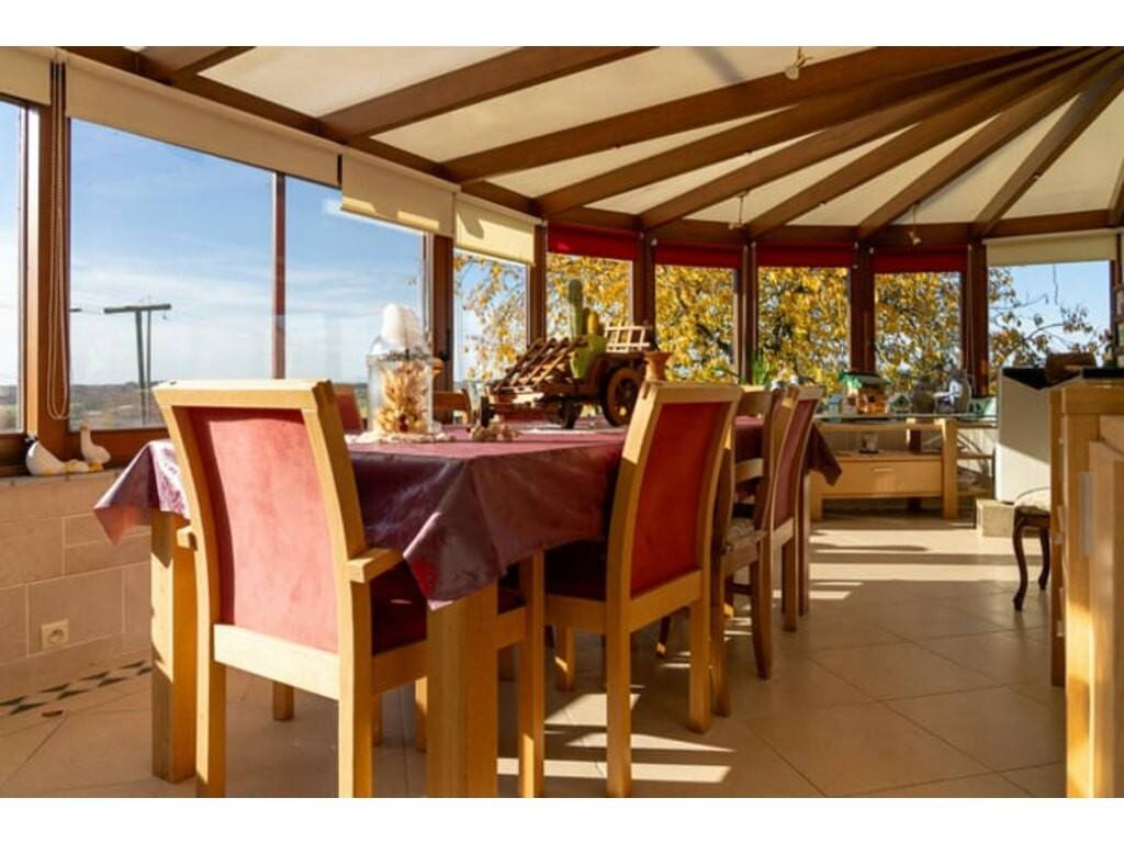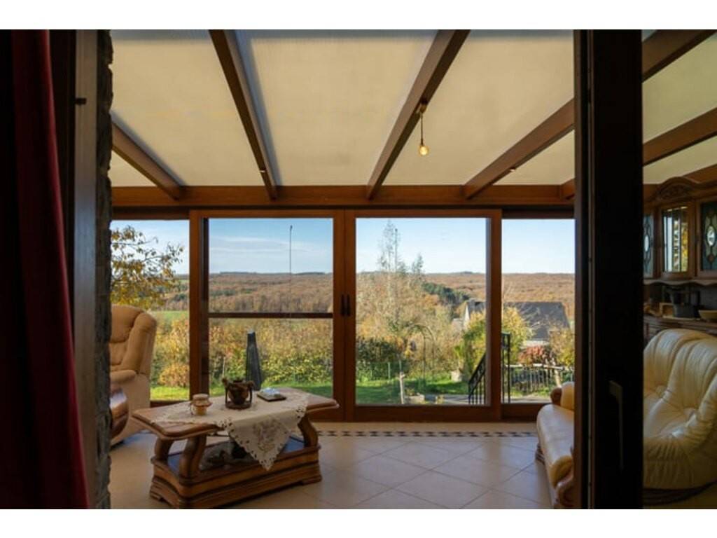 La pièce maîtresse de la maison est sa grande véranda de 45 m², offrant une vue dégagée à 180 degrés. Véritable espace de vie, elle apporte une luminosité remarquable et permet de profiter pleinement du paysage, été comme hiver. Le living, adjacent à la véranda, crée une atmosphère conviviale et ouverte. La cuisine, non aménagée, ainsi que la salle de bain, toutes deux à rénover, offrent de belles possibilités de personnalisation. La maison comprend trois chambres : une de taille moyenne et deux plus petites, idéales pour enfants, bureau ou espace invités.