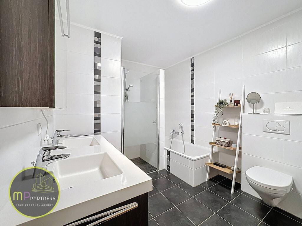- Spacious entrance hall - Large bright living room of +/- 24.40m² with balcony access - 13.00m² closed and equipped kitchen - Large +/-16.00m² bedroom - +/- 11.00m² bedroom - Bathroom with bath, shower, double washbasin and WC - Separate WC