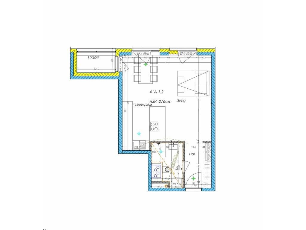 -Hall d'entrée -Salle de douche -Pièce de vie ouverte avec cuisine équipée et accès à la loggia
