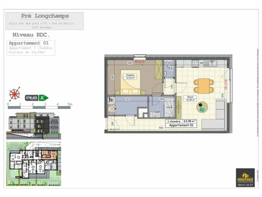 Magnifique appartement 1ch situé au rez-de-chaussée de la Résidence Pré Longchamps, avec une situation privilégiée au centre de Waremme. Très lumineux avec son orientation plein sud. Idéal pour une première acquisition ou un investissement avec la possibilité de bénéficier de 6% de TVA sur la construction et de 3% de droit d'enregistrement sur le terrain, moyennant le respect de certaines conditions. Cet appartement répond aux meilleures performances énergétiques avec son PEB A, grâce entre autres à son niveau d'isolation supérieure, ainsi qu'à ses panneaux pholtaïques individuels. Il est également possible d'acquérir des parkings extérieurs en sus. Contactez-nous dès aujourd'hui au 084/31 05 57 - immo@houyoux.be Sale Details - Honoraires à la charge: Non communiqué