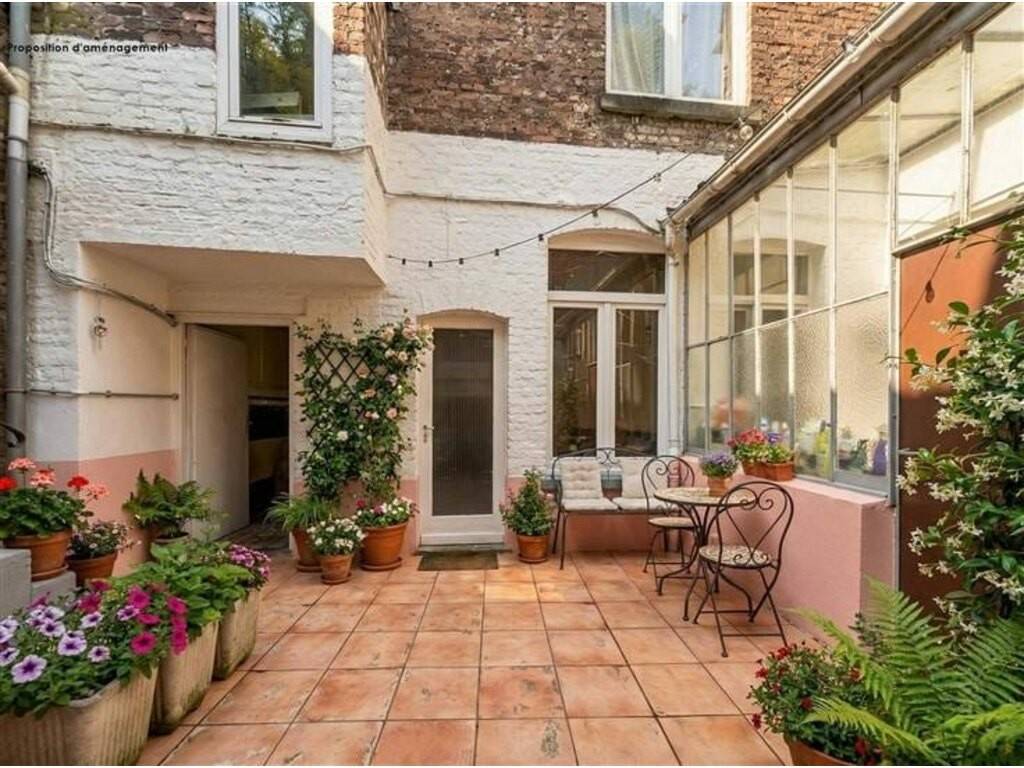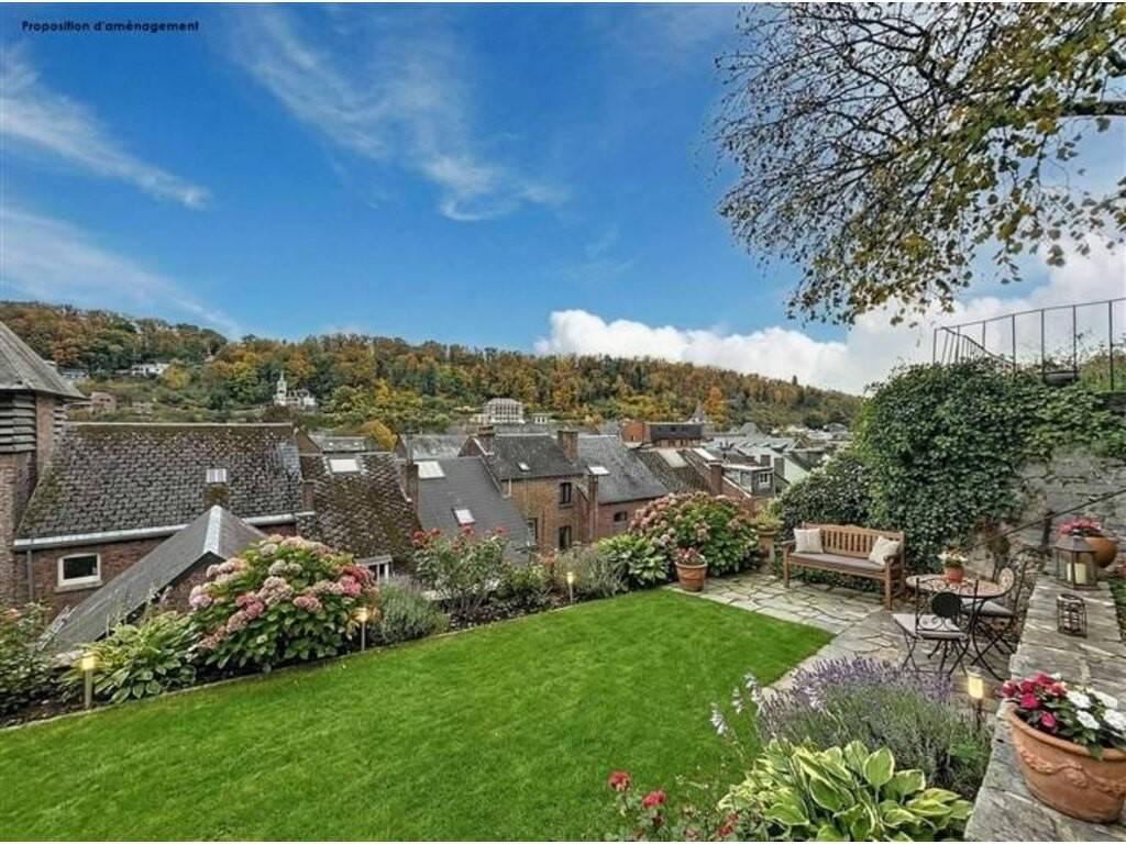 Enfin, à l'extérieur, une charmante cour pavée commune mène à un jardin, de 5 ares, agréable et intimiste profitant d'une vue dégagée sur les toits et les environs de Dinant.